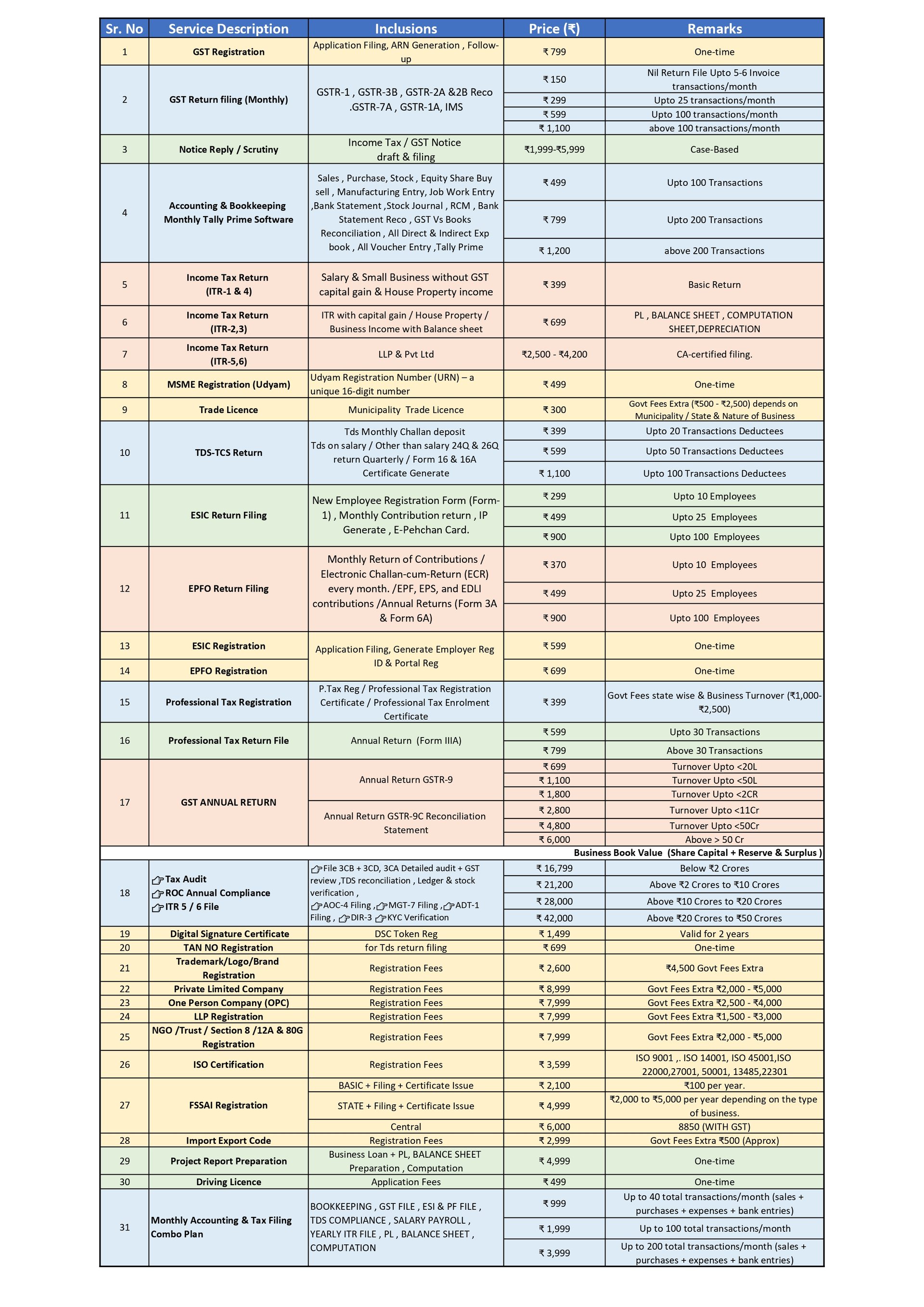 Documents RequiredMonthly Compliance Accounts & Tax filing